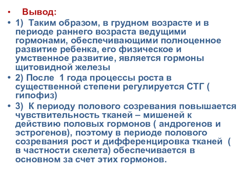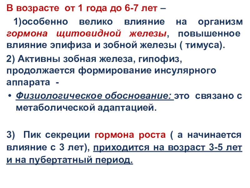 периоде раннего возраста ведущими гормонами, обеспечивающими полноценное развитие ребенка, его