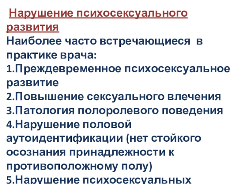 Слайд 54Нарушения полового и психосексуального развитияу детей и подростков.