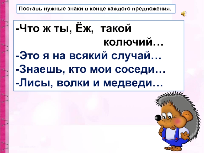 Поставь нужные знаки в конце каждого предложения.