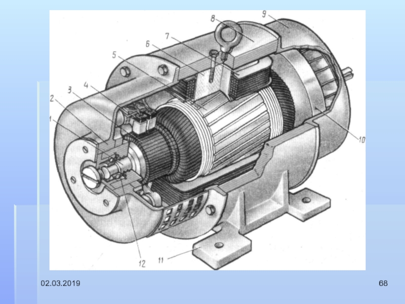 Слайд 64Устройство трехфазного асинхронного двигателя с короткозамкнутым
