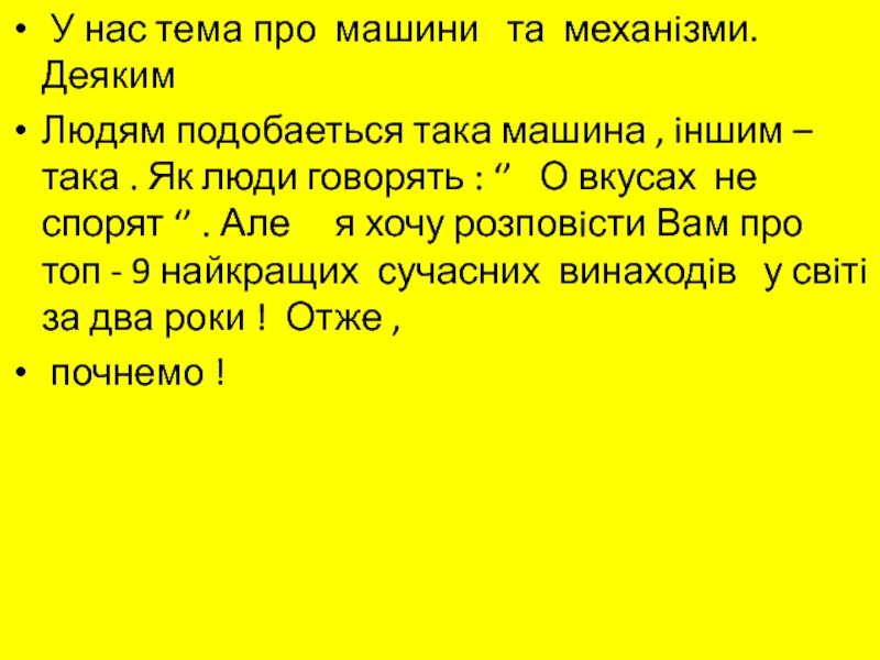Слайд 10 У нас тема про машини та механiзми. Деяким