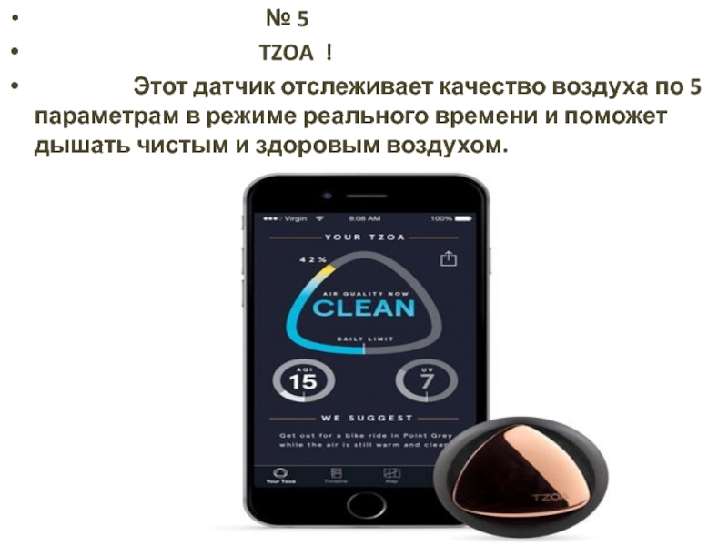 Этот датчик отслеживает качество воздуха по 5 параметрам в режиме реального времени и поможет дышать чистым и здоровым воздухом.