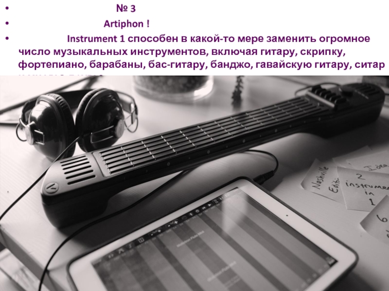 Instrument 1 способен в какой-то мере заменить огромное число музыкальных инструментов, включая гитару, скрипку, фортепиано, барабаны, бас-гитару, банджо, гавайскую гитару, ситар и многое другое.