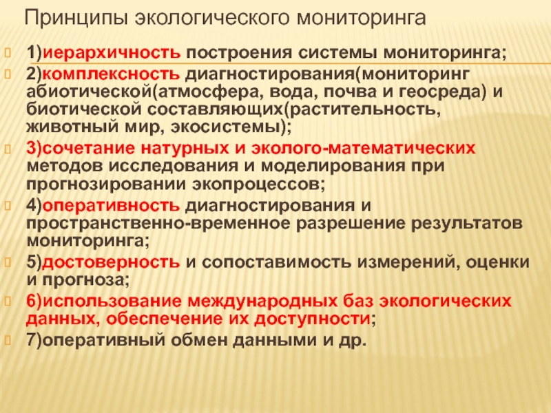 пространства, контроль загрязнений водного и воздушного бассейнов, мониторинг озонового слоя