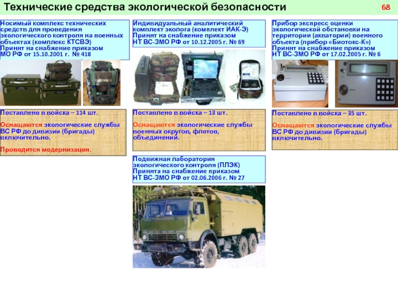 Слайд 69ПОСТАВКА ТЕХНИЧЕСКИХ СРЕДСТВ ЭКОЛОГИЧЕСКОЙ БЕЗОПАСНОСТИ