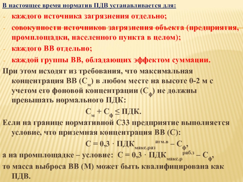ПДК- экологический норматив, максимальная концентрация ВВ, не вызывающая негативного воздействия на организм человека, ОС.