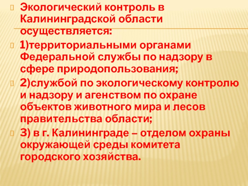 Экологический контроль – проверка и принуждение природопользователей (субъектов права окружающей среды) к исполнению экологических требований.