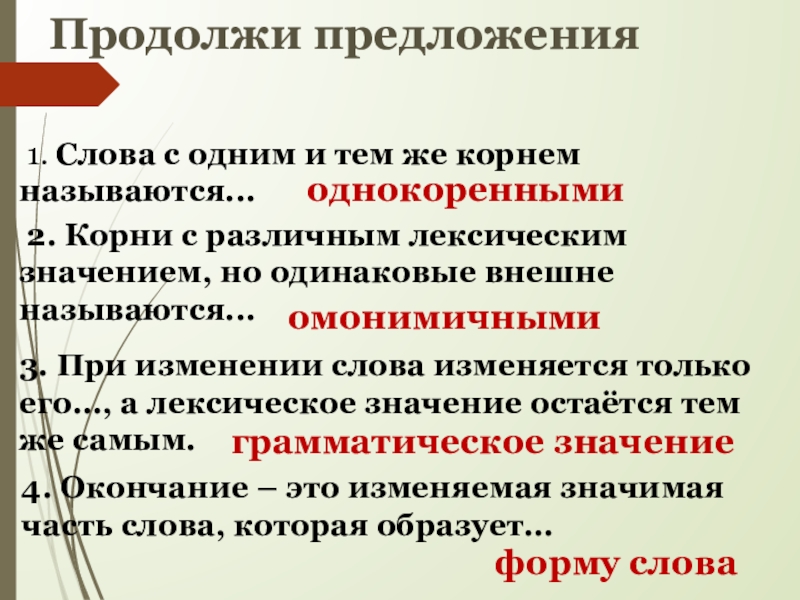 внешне называются...3. При изменении слова изменяется только его..., а лексическое значение остаётся тем же самым.