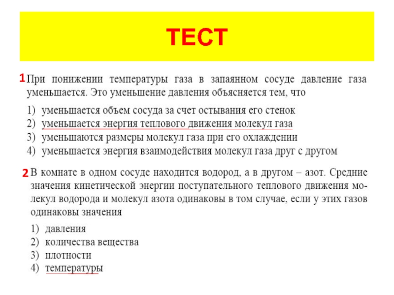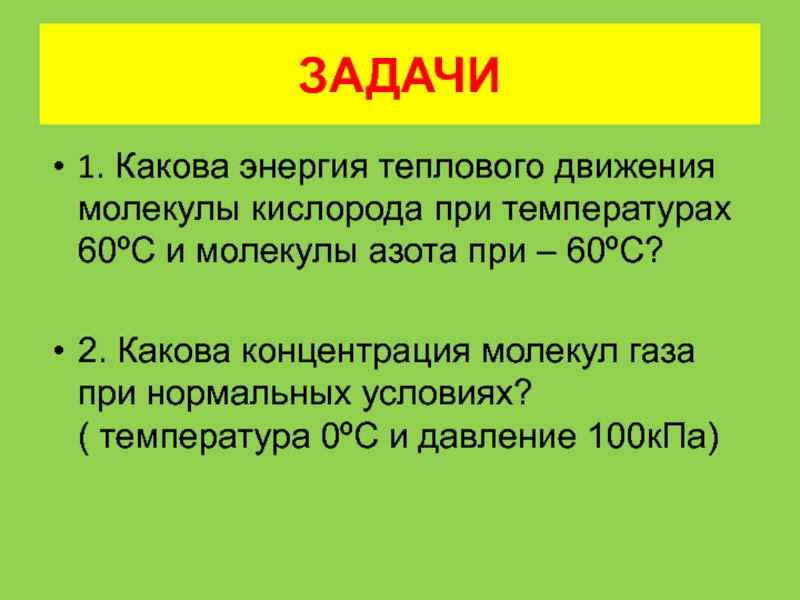 1. Какова энергия теплового движения молекулы кислорода при температурах 60ºС и молекулы азота при – 60ºС?