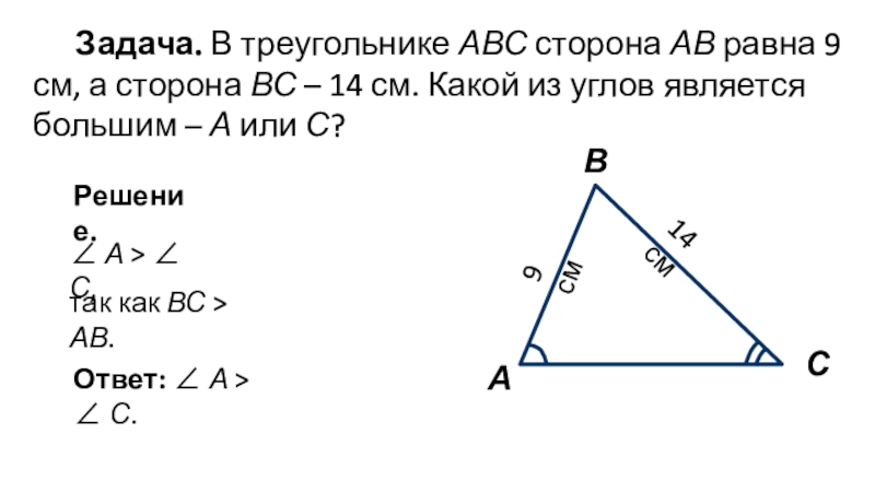 Следовательно, ∠ C > ∠ А.