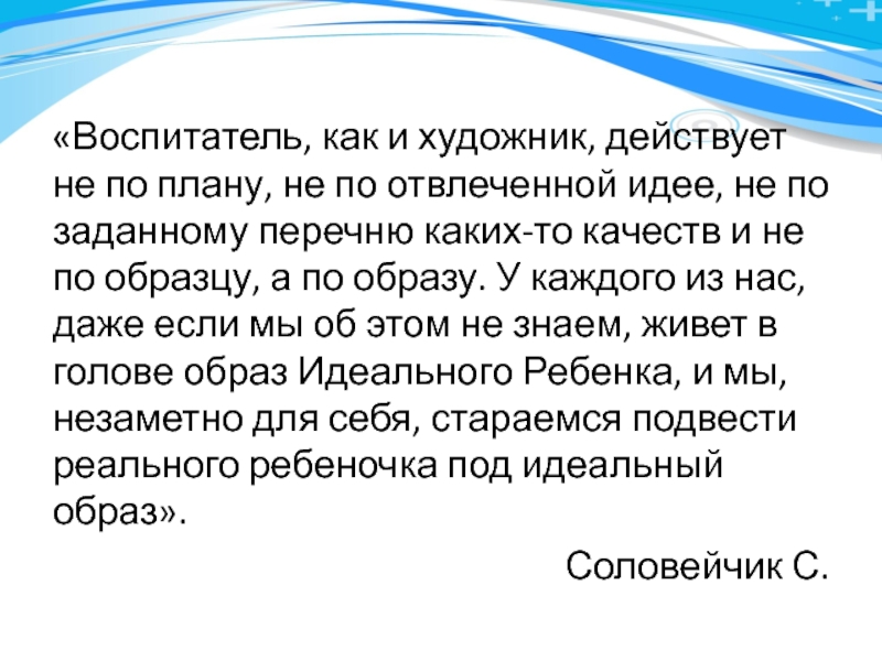 Слайд 11«Воспитатель, как и художник, действует не по плану, не по