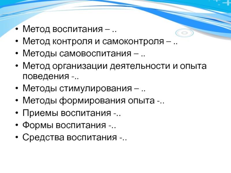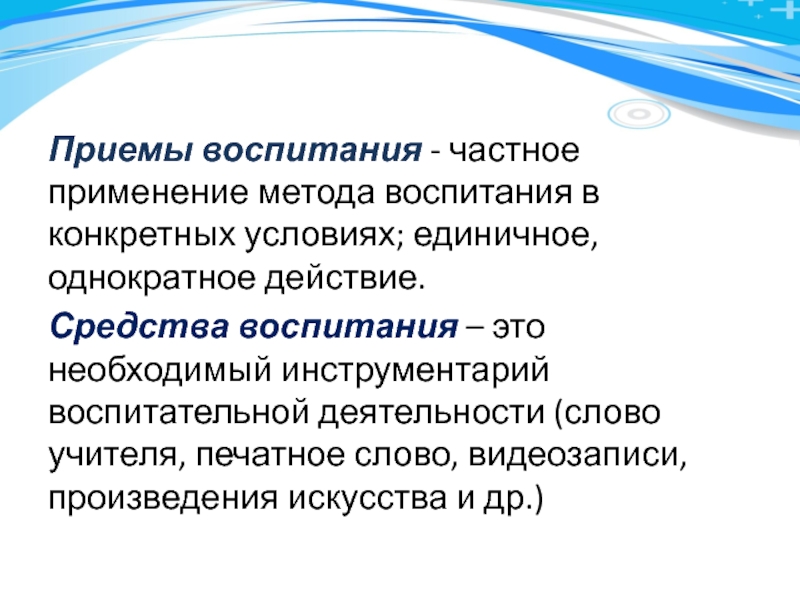 Слайд 38Приемы воспитания - частное применение метода воспитания в конкретных условиях;