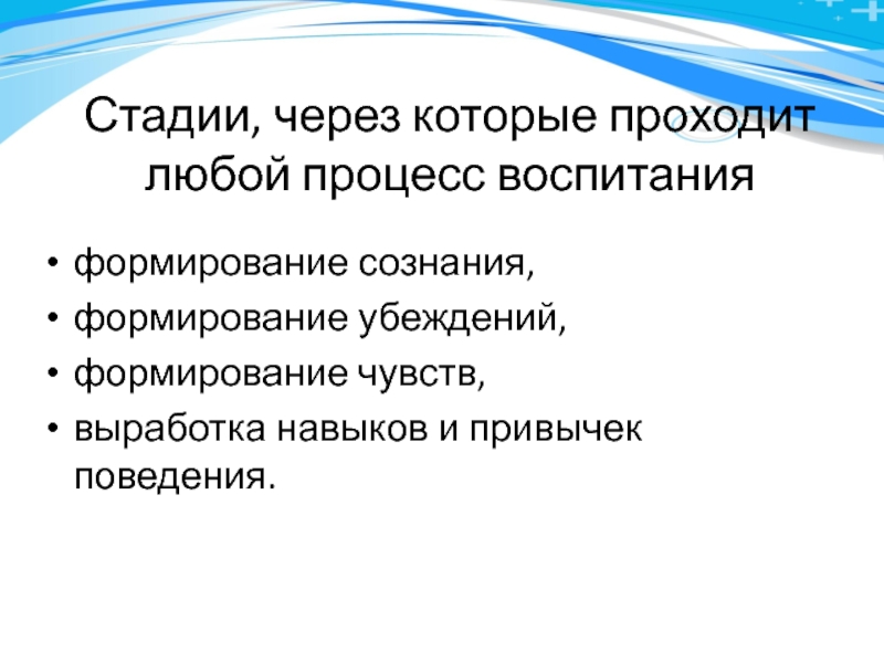 Слайд 9Стадии, через которые проходит любой процесс воспитания