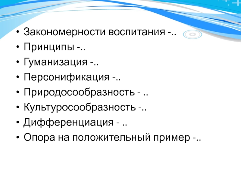 природосообразность, культуросообразность, гуманизация, дифференциация: