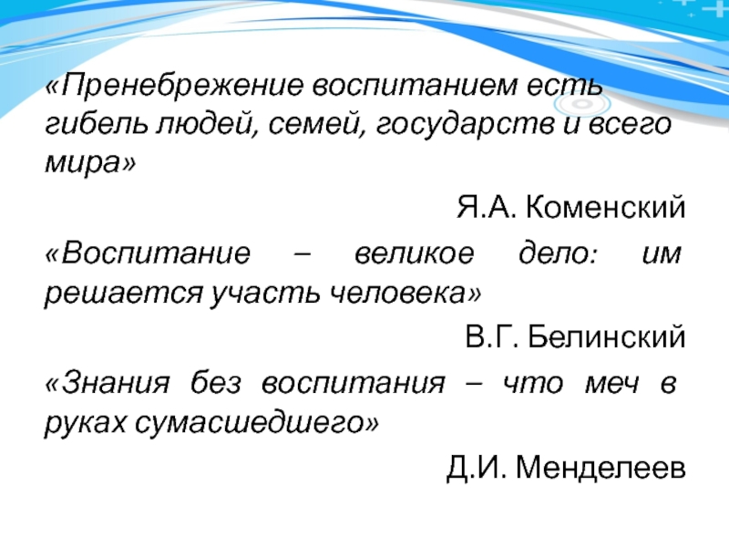 Слайд 2«Пренебрежение воспитанием есть гибель людей, семей, государств и всего мира»