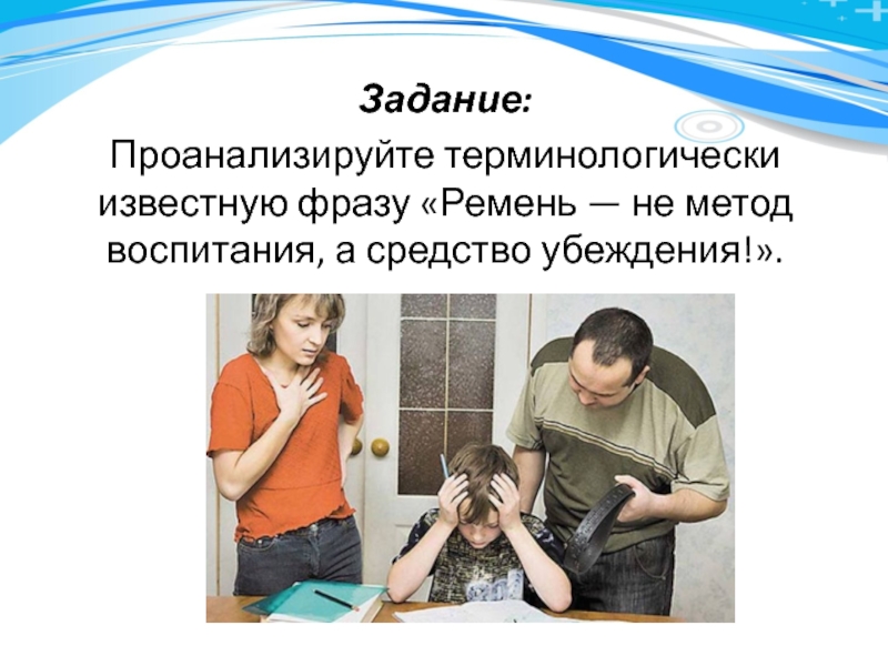 Проанализируйте терминологически известную фразу «Ремень — не метод воспитания,