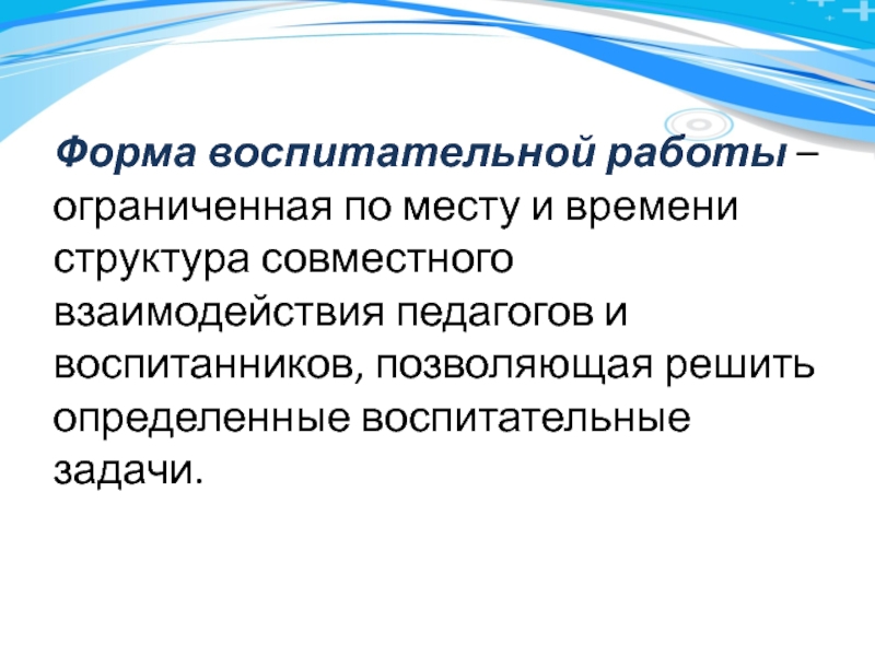 Слайд 36Форма воспитательной работы – ограниченная по месту и времени структура