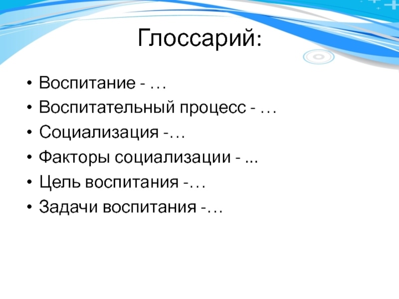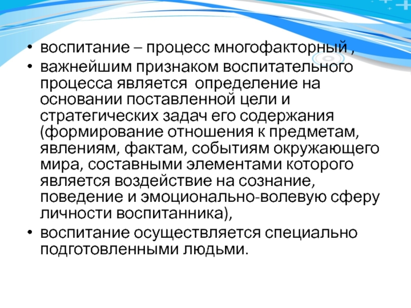 •воспитание – процесс, характеризующийся изменчивостью и динамичностью,
