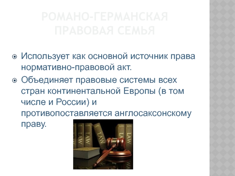 стран континентальной Европы (в том числе и России) и противопоставляется англосаксонскому праву.