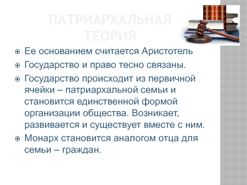 отнести патриархальную, теологическую и регулятивные теории происхождения