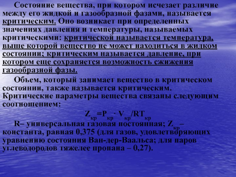 газообразной фазами, называется критическим. Оно возникает при определенных значениях давления