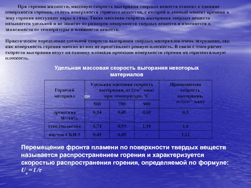Слайд 11При горении жидкости, массовую скорость выгорания твердых веществ относят к