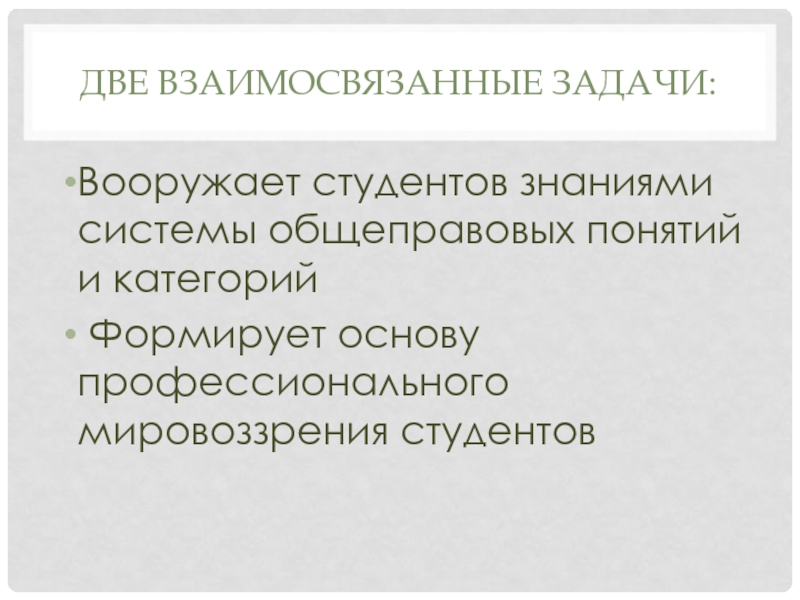 Вооружает студентов знаниями системы общеправовых понятий и категорий