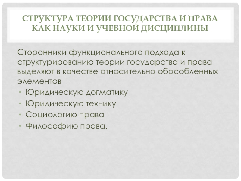 функционального подхода к структурированию теории государства и права выделяют в