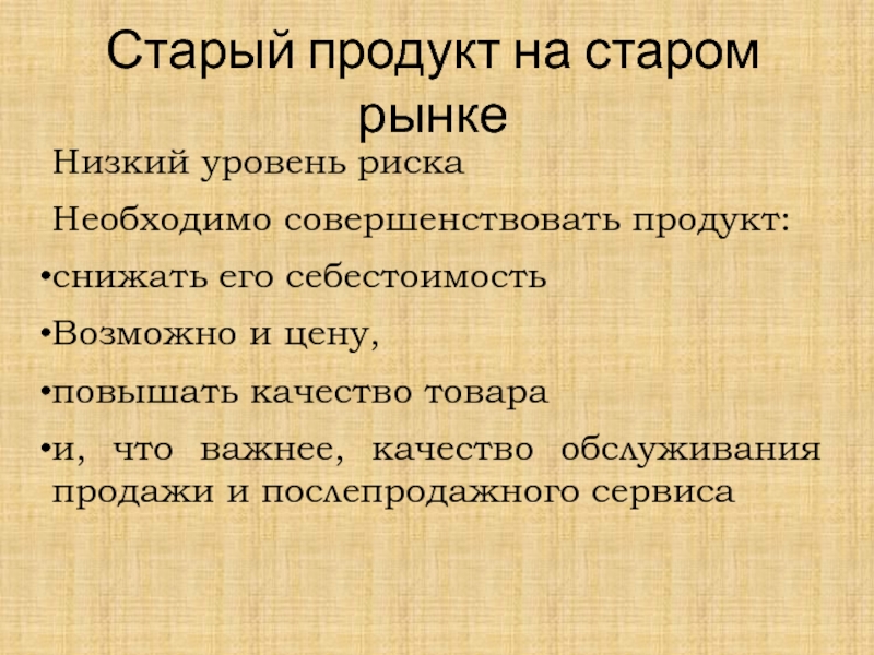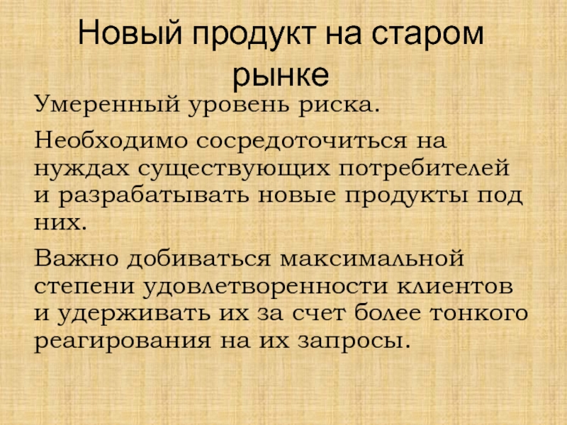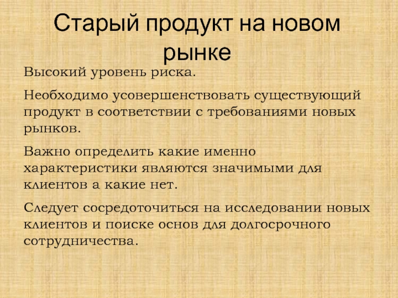 Необходимо усовершенствовать существующий продукт в соответствии с