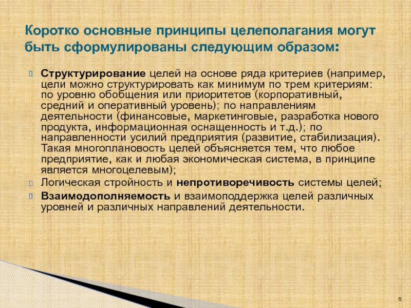 Слайд 6Структурирование целей на основе ряда критериев (например, цели можно структурировать