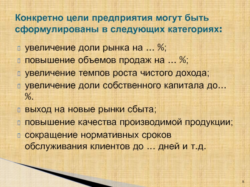 Конкретно цели предприятия могут быть сформулированы в следующих категориях: