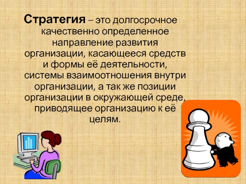 Слайд 3Стратегия – это долгосрочное качественно определенное направление развития организации, касающееся