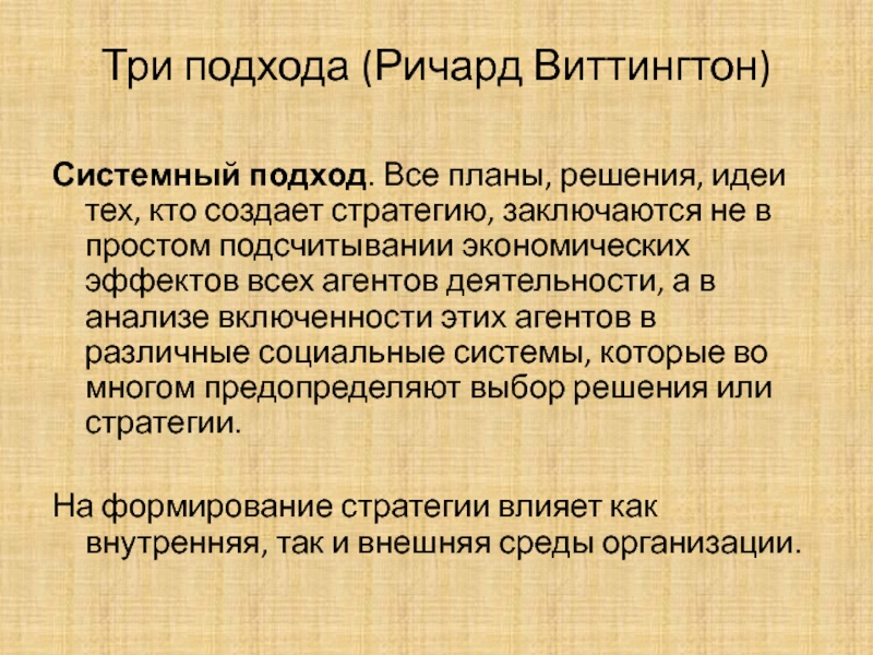 Процессуальный подход. Отвергает рациональность поведения агентов окружающей