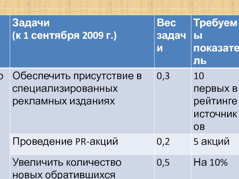 Слайд 5Характеристики и качество целей (сложность, достижимость, допустимые потери, срок достижения,
