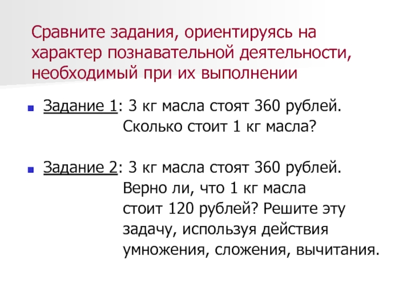 Слайд 15Сравните задания, ориентируясь на характер познавательной деятельности, необходимый при их