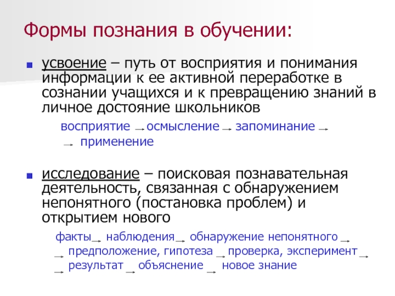 результатов (выработка умений и навыков) или приобретают новые результаты подсказанными путями (в готовом виде)