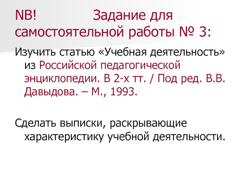 Изучить статью «Учебная деятельность» из Российской педагогической энциклопедии.