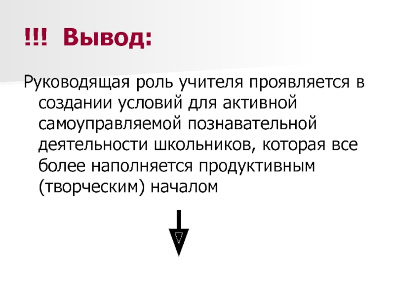 самоуправляемой познавательной деятельности школьников, которая все более наполняется продуктивным (творческим)