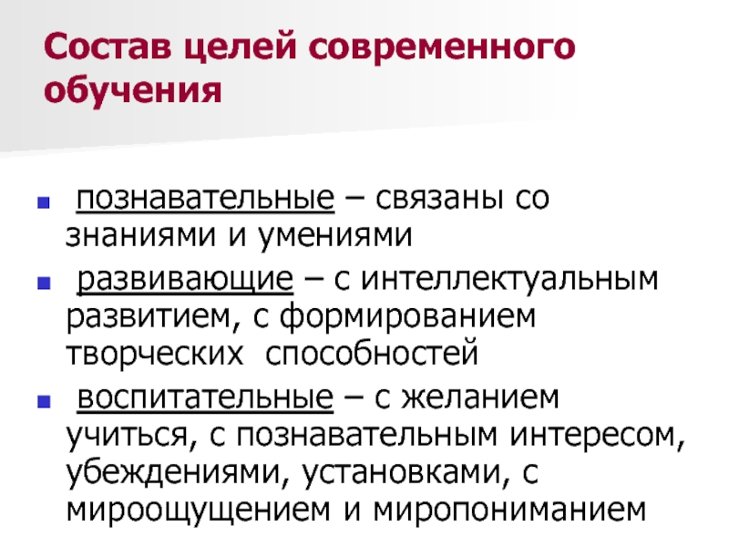 Слайд 5Цели обучения – это системо- и структурообразующий элемент процесса обучения,