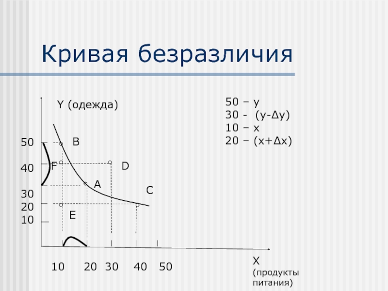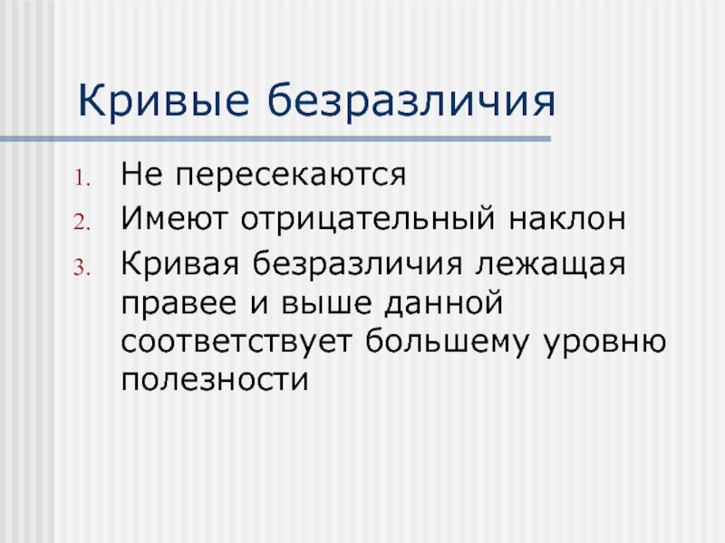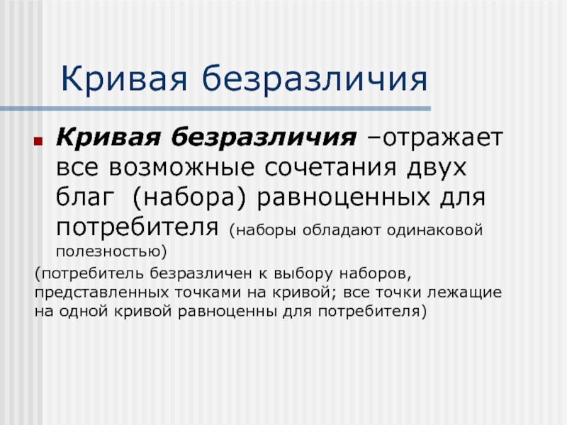 Кривая безразличия –отражает все возможные сочетания двух благ (набора)