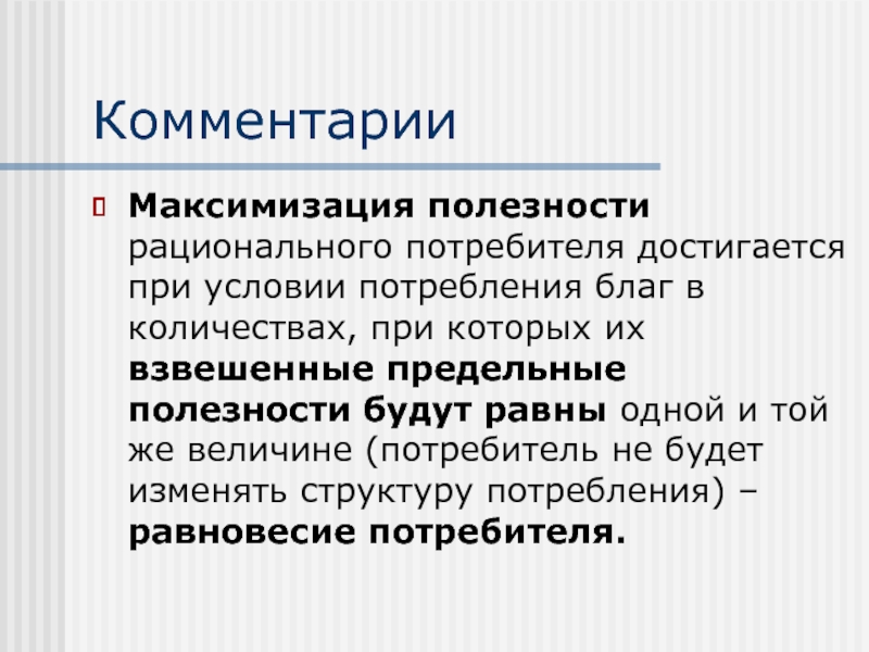 количествах, при которых их взвешенные предельные полезности будут равны одной
