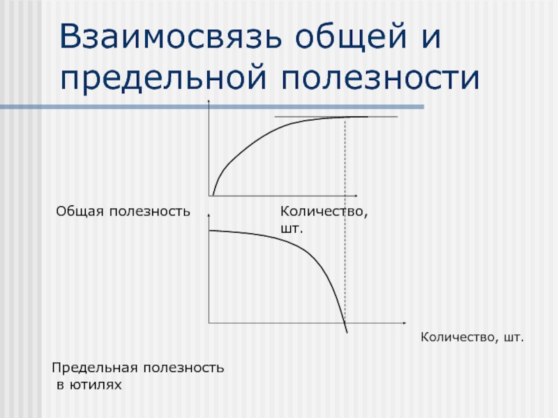 Общая полезность TU уменьшается, когда предельная полезность меньше 0 (MU<0). Увеличение потребления блага приносит вред (вызывает отвращение).