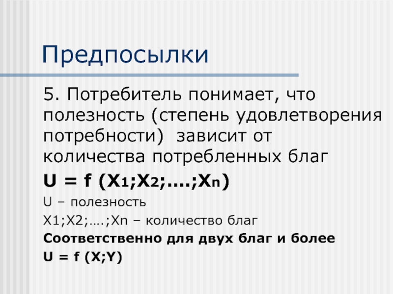 5. Потребитель понимает, что полезность (степень удовлетворения потребности) зависит от