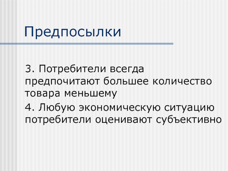 Слайд 3Анализ потребительского поведения строится на определенных предпосылках