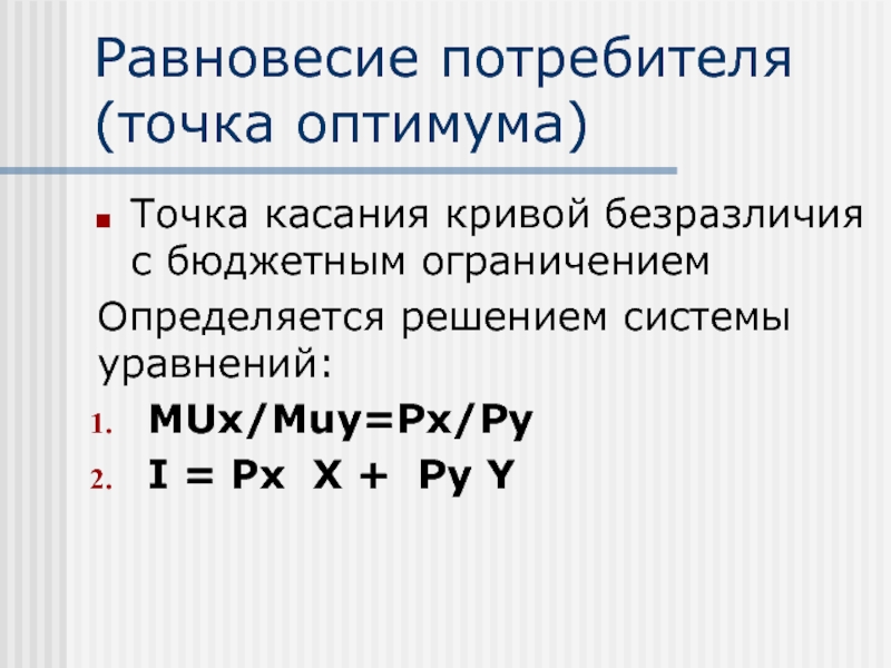 и той же величине (потребитель не будет изменять структуру потребления) – равновесие потребителя.