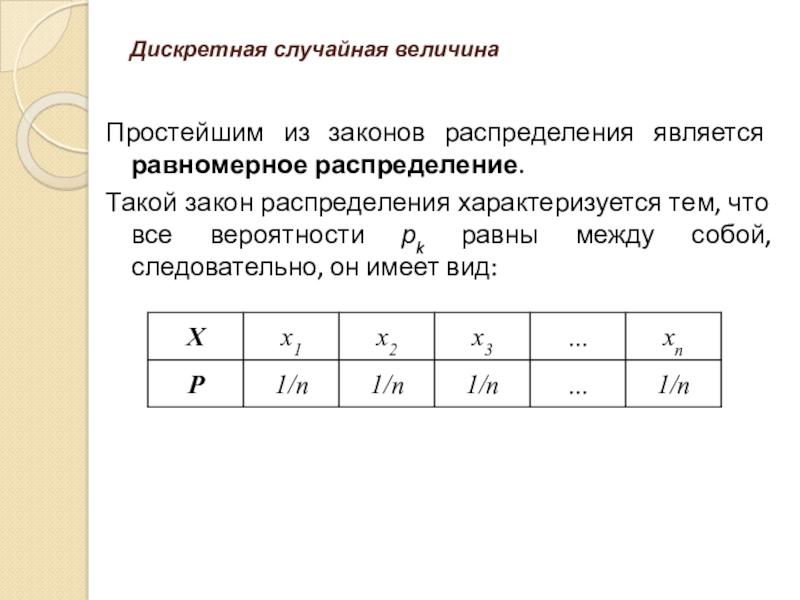 закон распределения характеризуется тем, что все вероятности рk равны между