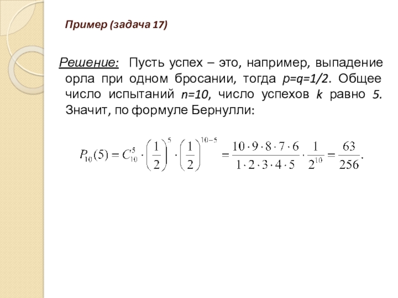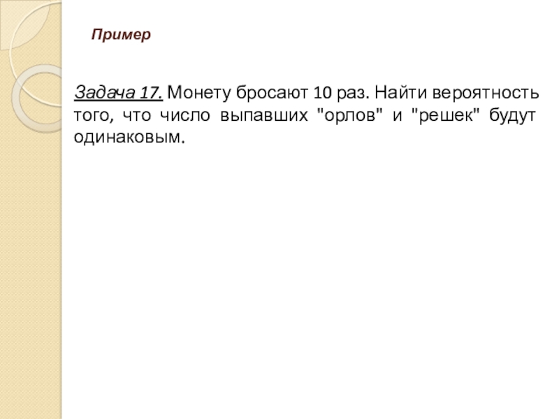 Задача 17. Монету бросают 10 раз. Найти вероятность того, что