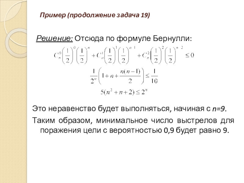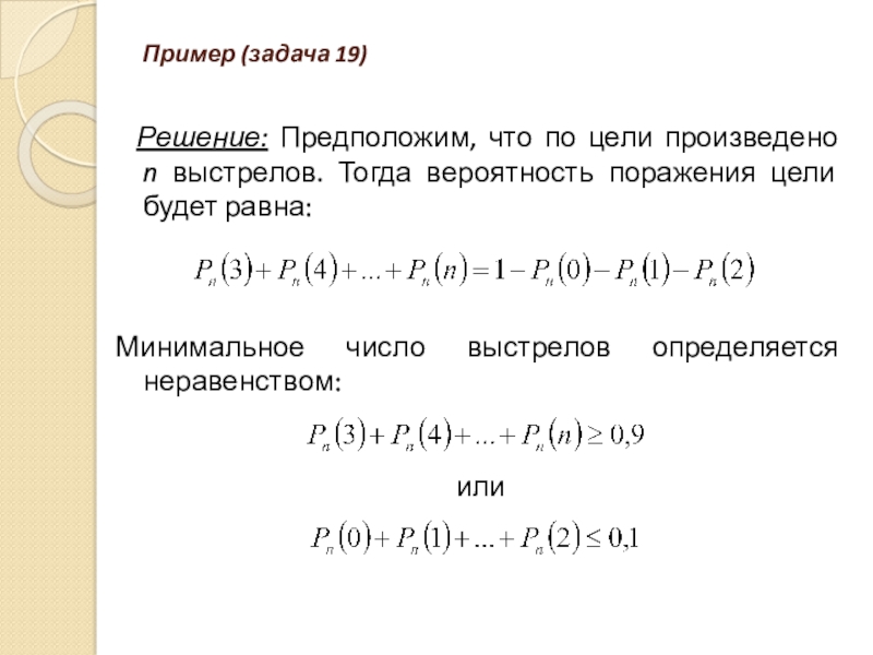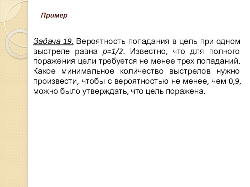Задача 19. Вероятность попадания в цель при одном выстреле равна