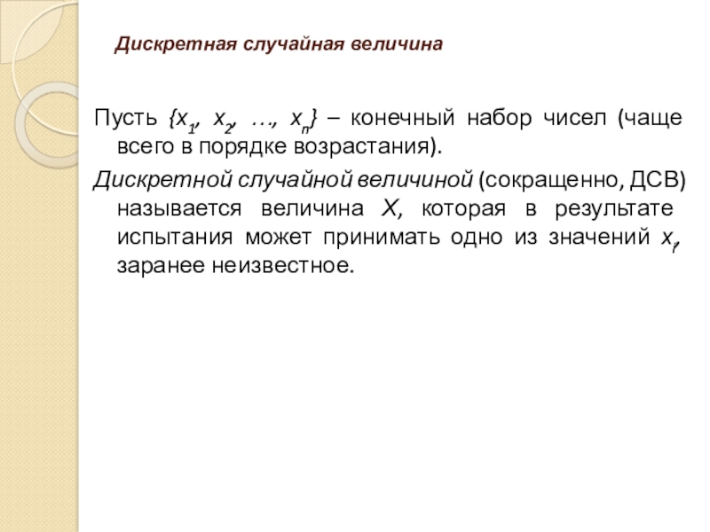 Дискретной случайной величиной (сокращенно, ДСВ)