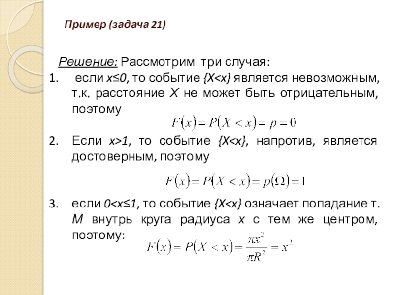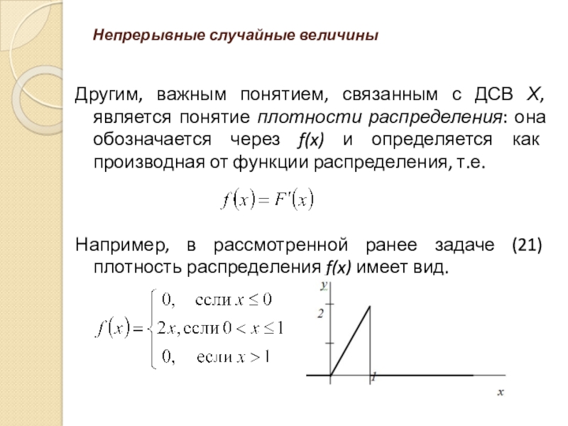 Например, в рассмотренной ранее задаче (21) плотность распределения f(x) имеет вид.